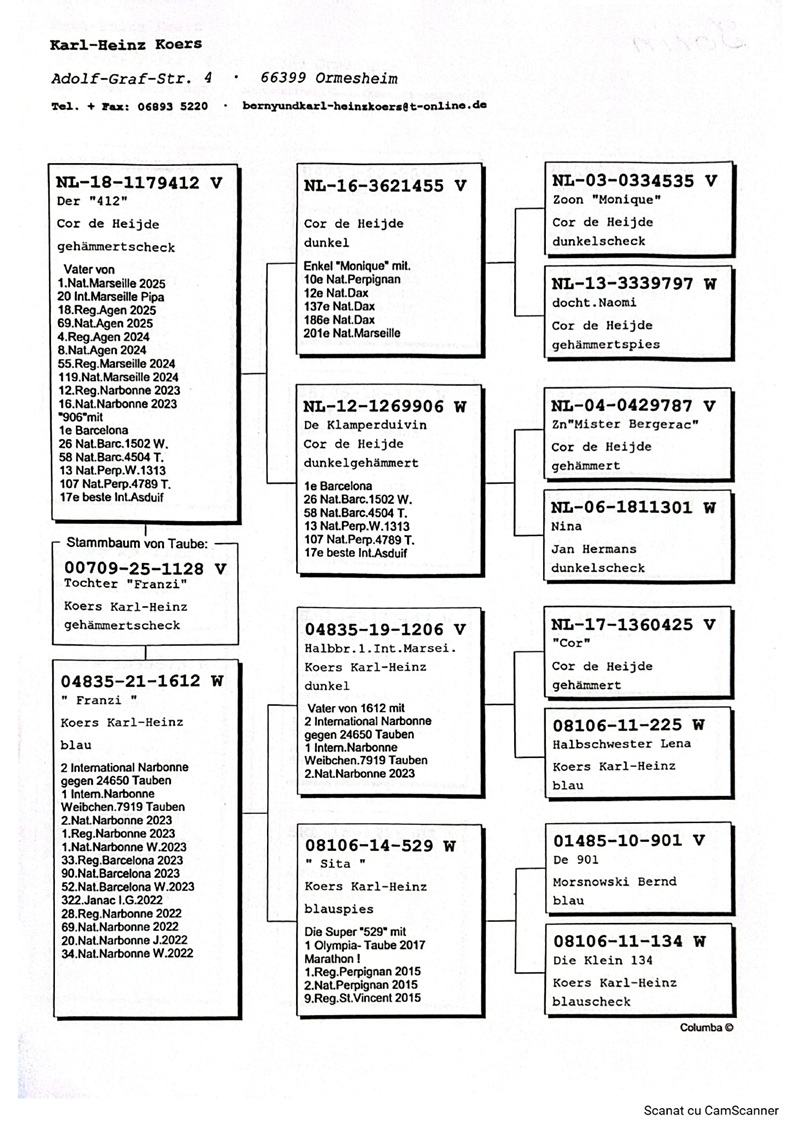 Koers Karl-Heinz, gebürtig aus Ormesheim, Deutschland, ist eine etablierte Persönlichkeit in der Welt des deutschen und europäischen Marathon-Taubensports. Durch konstante und bemerkenswerte Ergebnisse gehört er seit vielen Jahren zur Elite der internationalen Wettbewerbe und zeigt dabei außergewöhnliche Leistung und beeindruckende Beständigkeit von Etappe zu Etappe.