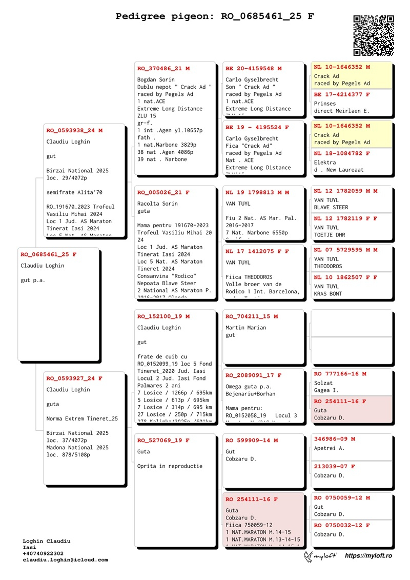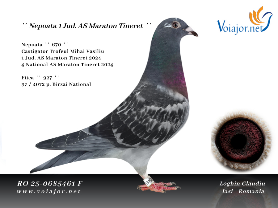 Die Wettkampfsaison 2024 bestätigte den Wert seiner Arbeit eindrucksvoll. Die Taube 191670-2023 absolvierte insgesamt 3.573 km in vier Marathon- und Extremflügen, erzielte die niedrigste Strafpunktzahl landesweit und gewann die prestigeträchtige „Vasiliu Mihai“-Trophäe – eine Leistung, die die sportliche und organisatorische Reife des Züchters aus Iași unterstreicht.