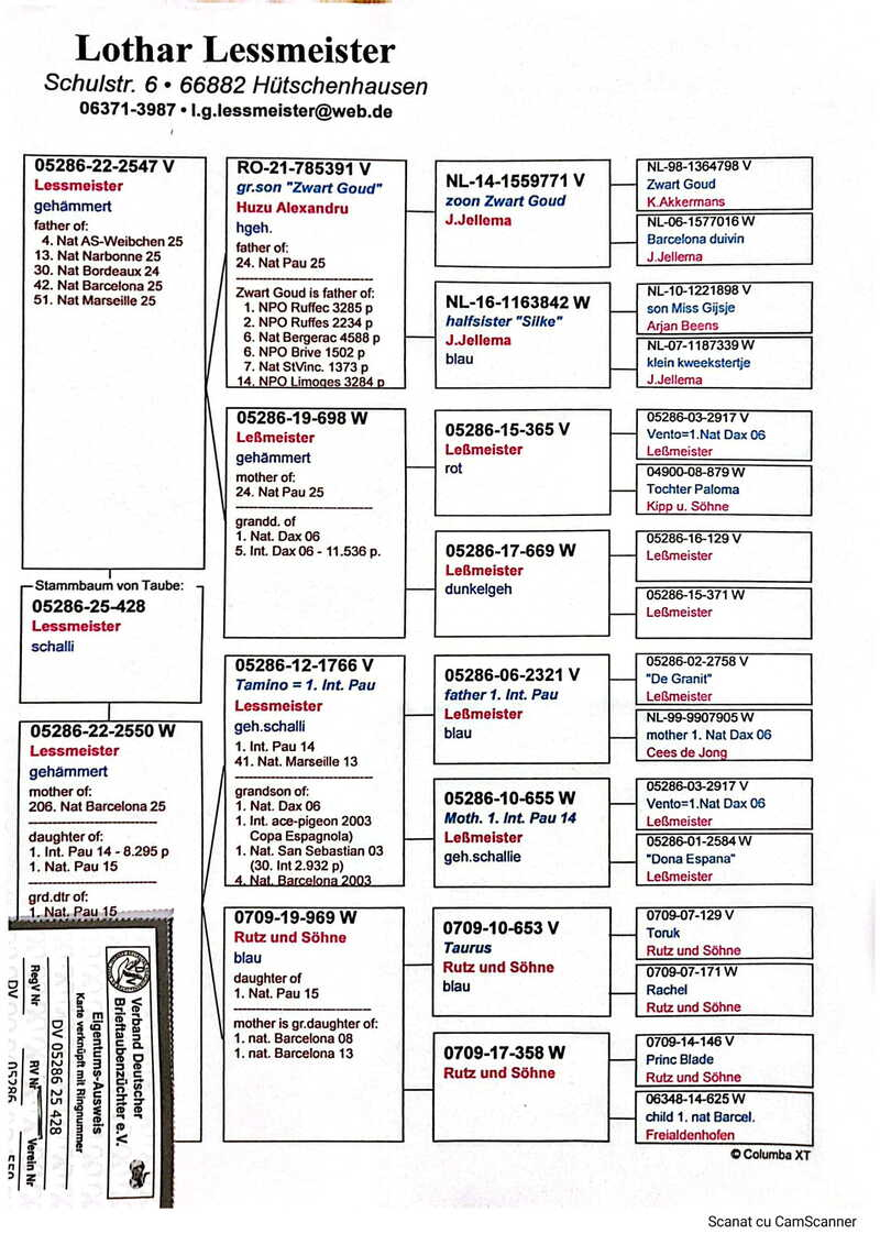 Lothar Lessmeister ist ein bekannter Name in der Welt der Taubenzucht, insbesondere unter Enthusiasten in Rumänien. Sein Ruf basiert sowohl auf seinen herausragenden Leistungen bei internationalen Marathons als auch auf seinen Besuchen in Rumänien, wo er Fachseminare im Rahmen der nationalen Ausstellungen des Rumänischen Verbandes der Taubenzüchter (FCPR) gehalten hat.