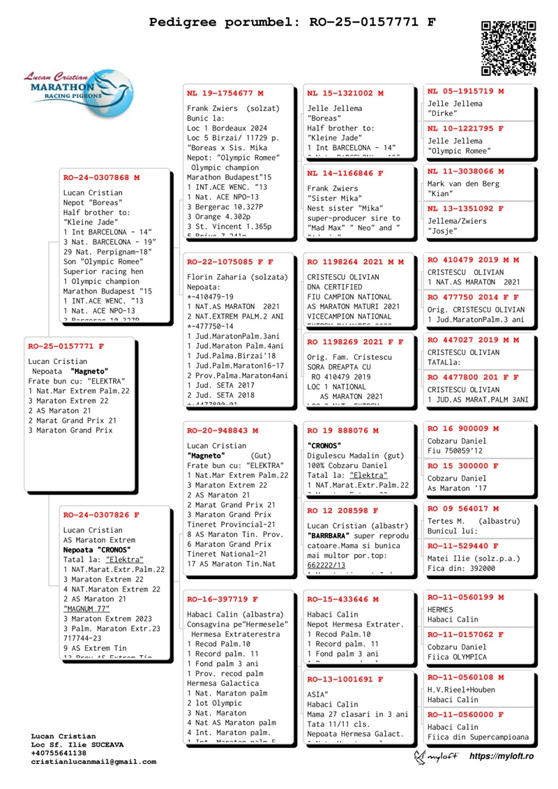 Heute gilt Lucan Cristian als wahres Vorbild an Professionalität in der rumänischen Taubenzucht. Sein Weg, der 2012 aus Leidenschaft begann und durch harte Arbeit, Disziplin und Hingabe gefestigt wurde, verkörpert die Werte einer Karriere, die auf Ernsthaftigkeit und aufrichtiger Liebe zu diesem edlen Sport beruht.