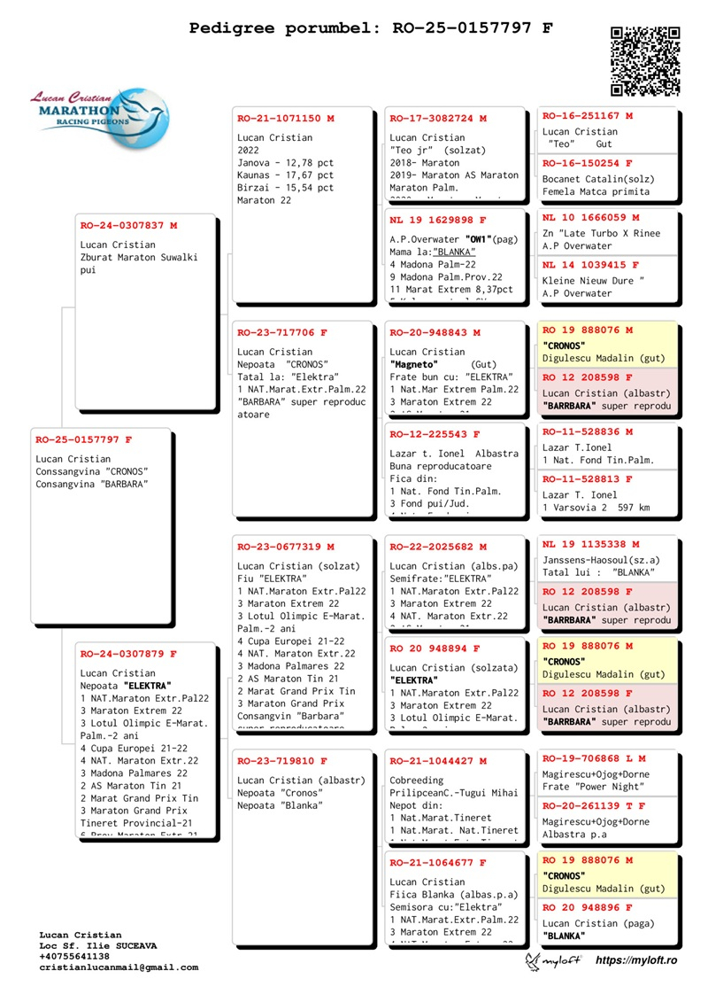 Heute gilt Lucan Cristian als wahres Vorbild an Professionalität in der rumänischen Taubenzucht. Sein Weg, der 2012 aus Leidenschaft begann und durch harte Arbeit, Disziplin und Hingabe gefestigt wurde, verkörpert die Werte einer Karriere, die auf Ernsthaftigkeit und aufrichtiger Liebe zu diesem edlen Sport beruht.