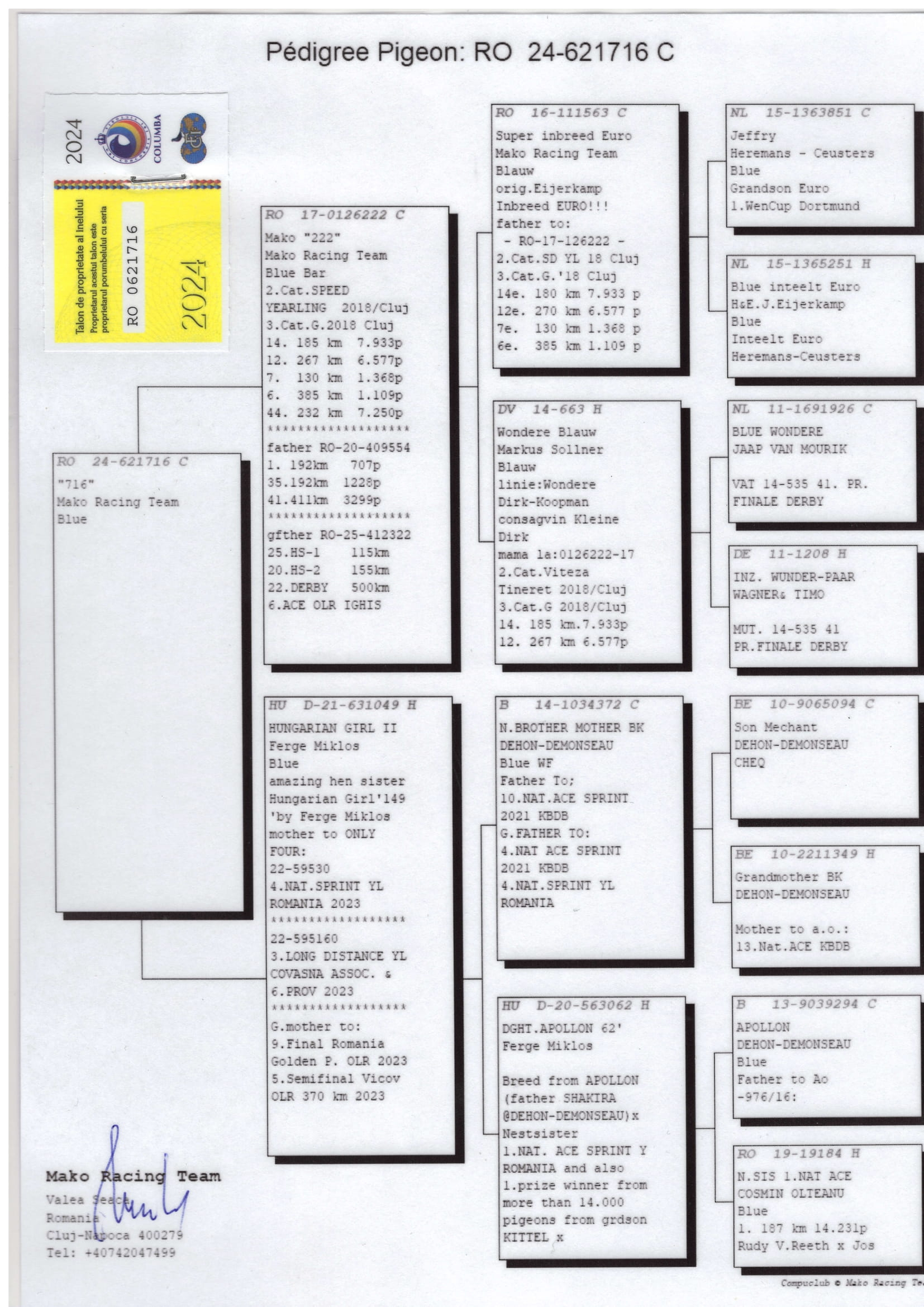 András Makó gilt als eine der herausragenden Persönlichkeiten des Taubensports in Cluj und in ganz Rumänien. Von Beginn seiner Laufbahn an zeichnete er sich als außergewöhnlicher Wettkämpfer, insbesondere auf Kurzstreckenflügen, aus.