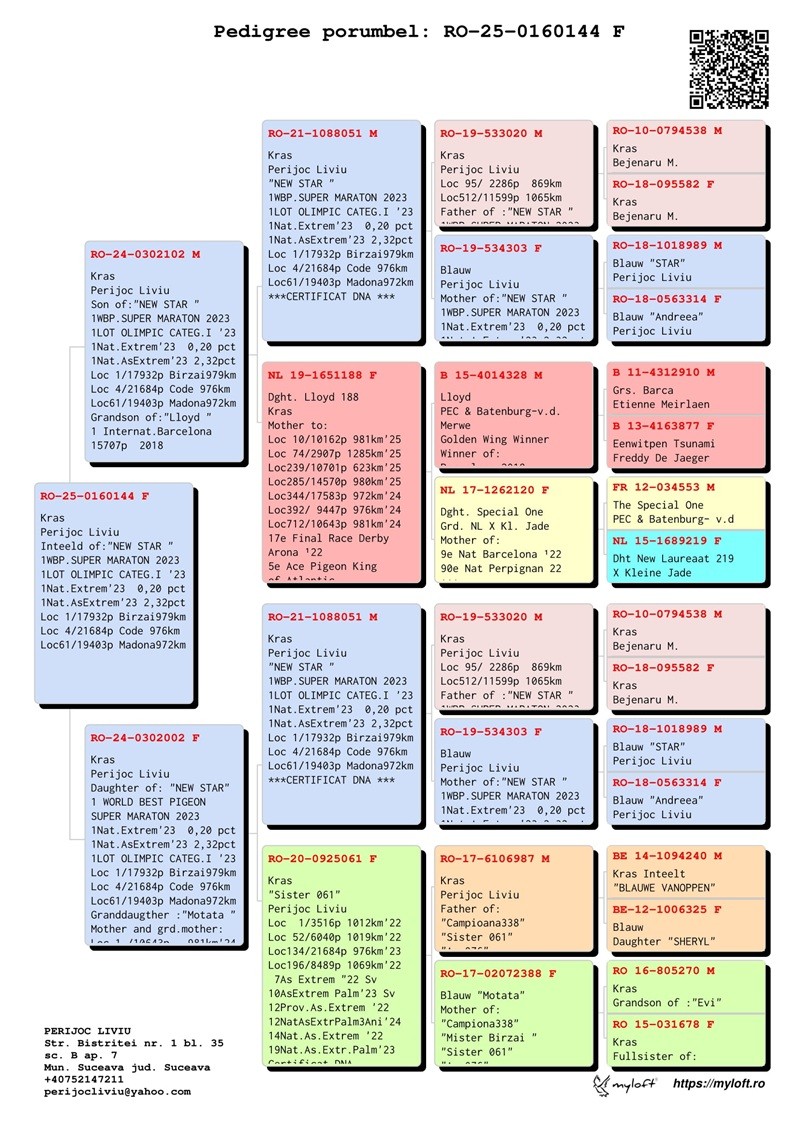 Diese Ergebnisse unterstreichen die langjährige Beständigkeit und den Erfolg von Liviu Perijoc bei nationalen und provinziellen Taubenrennen und festigen seinen Status als Elite-Züchter in den Kategorien Extrem-Marathon.