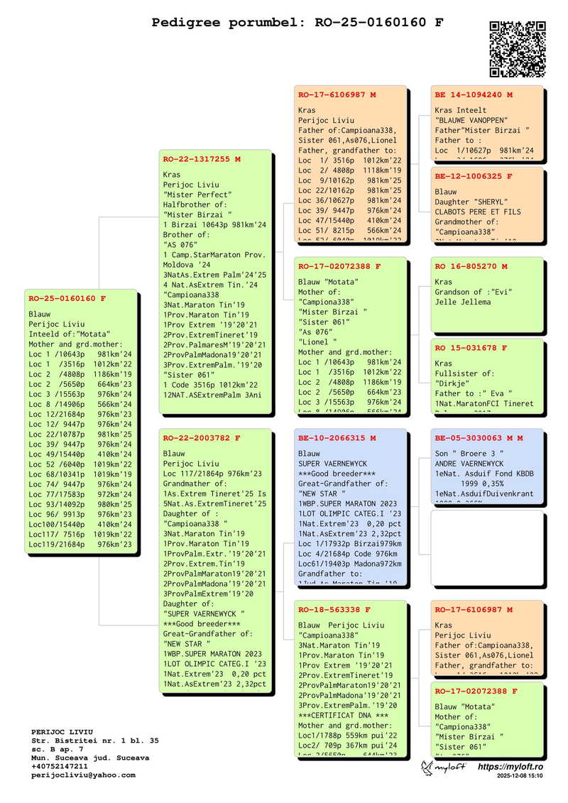 Diese Ergebnisse unterstreichen die langjährige Beständigkeit und den Erfolg von Liviu Perijoc bei nationalen und provinziellen Taubenrennen und festigen seinen Status als Elite-Züchter in den Kategorien Extrem-Marathon.