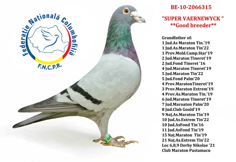 Die Saison 2023 kommt nicht überraschend, wenn man seinen vorherigen Erfolgen bedenkt, bei denen die Taube „Super Vaernewyck“, ein Supervermehrer, eine entscheidende Rolle bei der Gewinnung des Titels als Star-Marathon-Champion – Provinz Moldawien sowie als Kreismeister in der Kategorie AS-Marathon spielte.