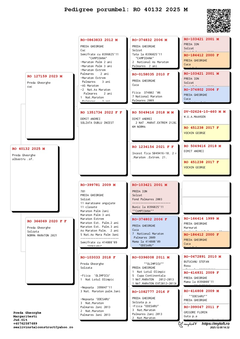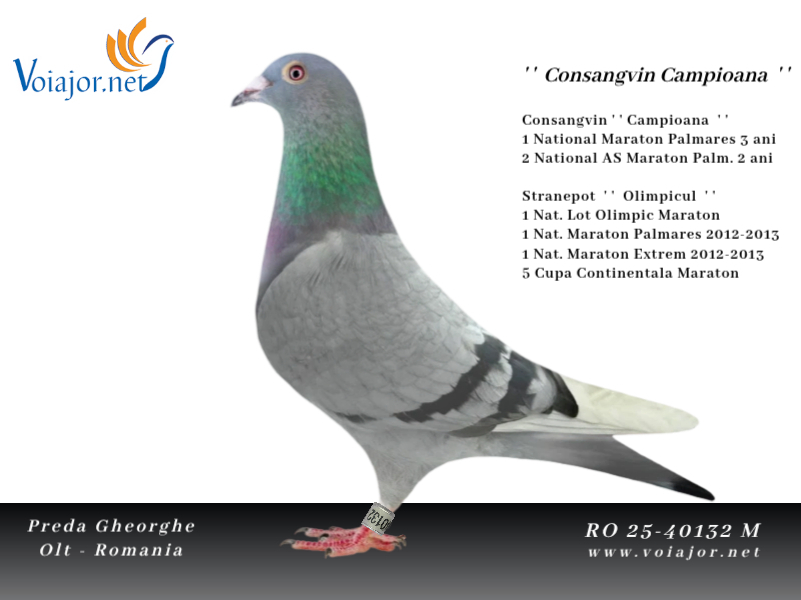 Zwischen 2000 und 2011 erzielte Gheorghe Preda bemerkenswerte Ergebnisse auf Kreisebene und nationaler Ebene. Ab der Saison 2012 erzielte er jedoch außergewöhnliche Ergebnisse auf nationaler Ebene, trotz der kleinen Anzahl an teilnehmenden Tauben. In jener Saison startete er mit einem Team von 24 Tauben, von denen 13 die Norm in der Marathon-Kategorie und 12 in der As-Marathon-Kategorie erfüllten, darunter 10 Jahrlinge und eine späte Taube, sowie 2 ausgewachsene Tauben.