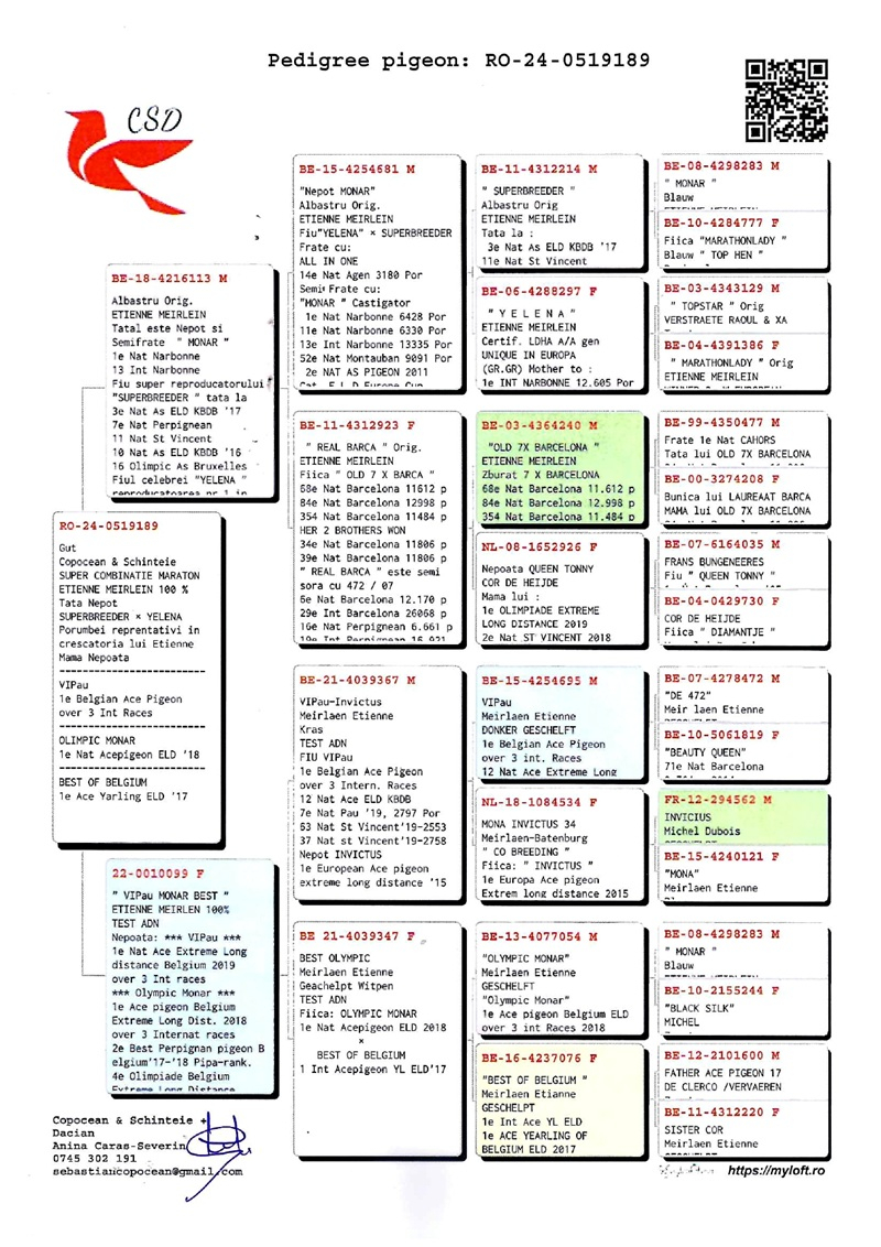 Mit diesem Angebot möchte Sandu Cătălin seine Erfahrung, Leidenschaft und das genetische Potenzial seiner Zucht mit anderen Liebhabern des Taubensports teilen, die nach höchster Leistung in der Königsklasse – dem Marathon – streben.