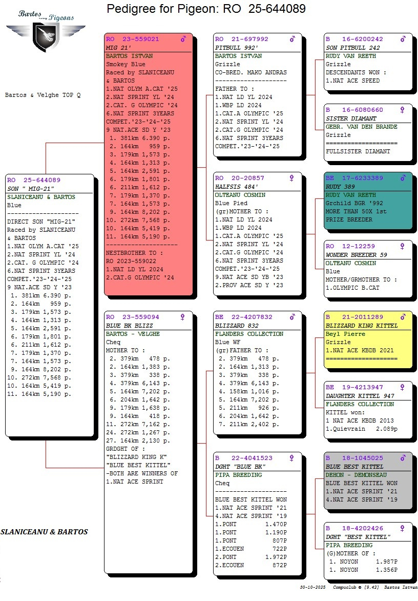 All diese Erfolge beweisen, dass Erfolg kein Zufall ist, sondern das Ergebnis harter Arbeit, klarer Vision und echter Leidenschaft für die Taubenzucht. Die Zucht Slăniceanu & Bartoș – Arad ist somit ein wahres Symbol der Exzellenz und zeigt, dass Rumänien durch Hingabe, Präzision und erstklassige genetische Selektion seinen Platz in der Elite der europäischen Taubenzucht weiter festigt.