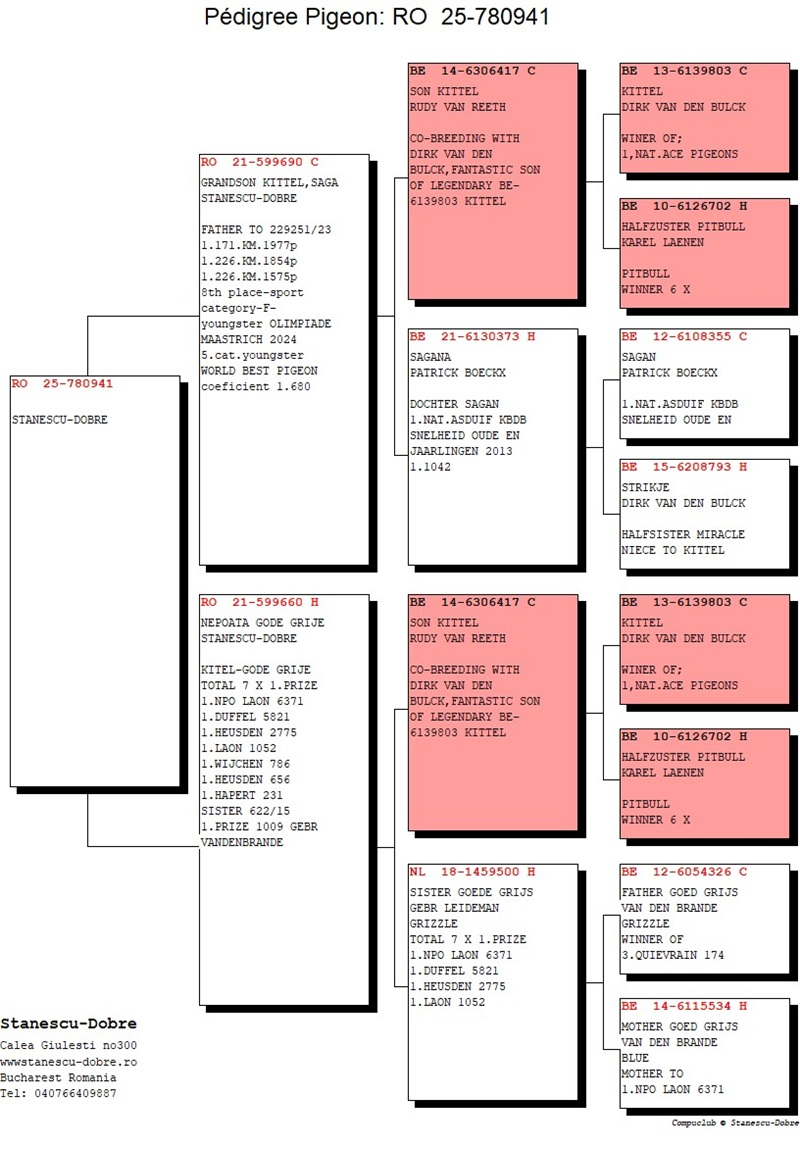 Jede Taube wird mit einem vollständigen Stammbaumoffiziellen Rennergebnissen und Informationen über bereits prämierte Geschwister angeboten. Die Auswahl erfolgt ausschließlich auf Grundlage nachgewiesener Leistung.