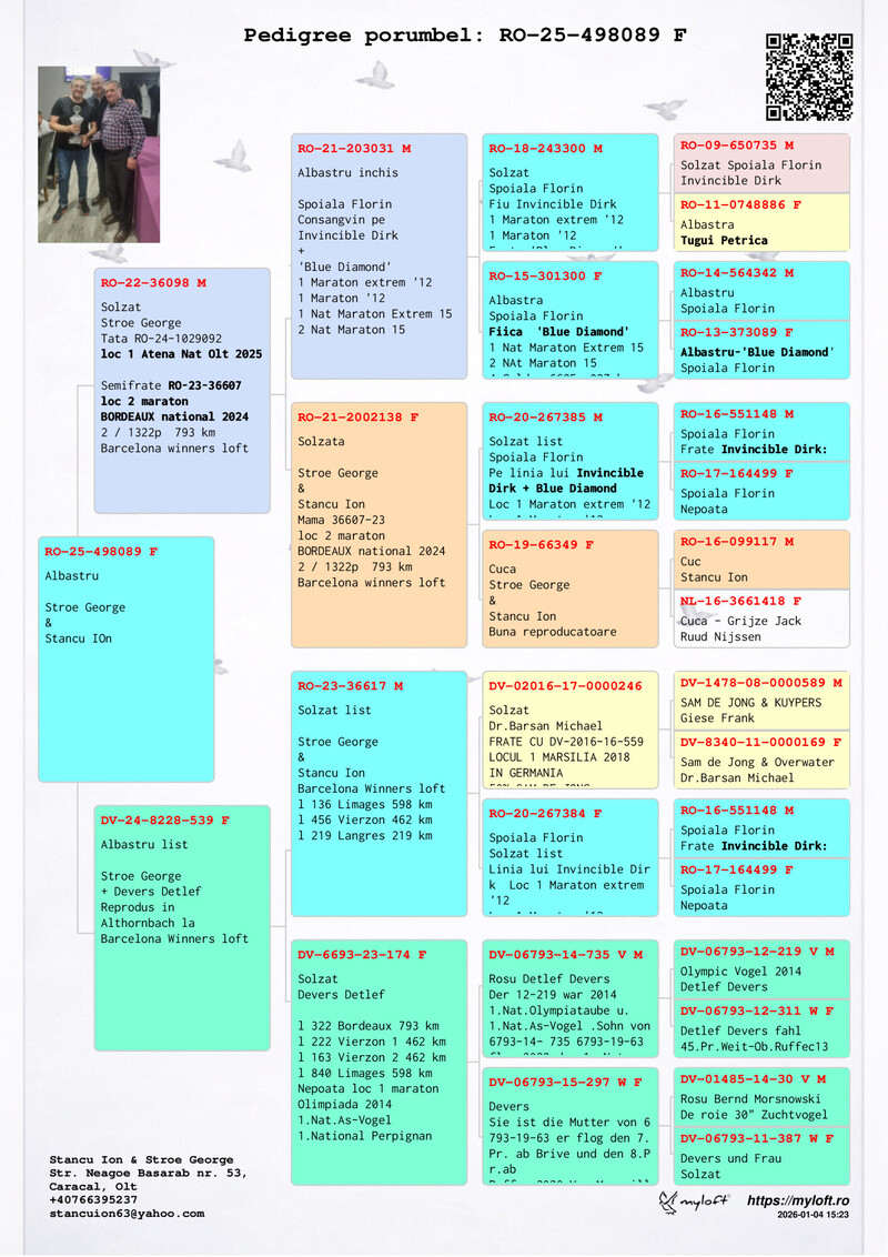 Zusammenfassend ist Ion Stancu weit mehr als ein einfacher Taubenzüchter: Er ist ein Pionier, ein Innovator und eine lebende Legende der rumänischen Brieftaubenzucht. Durch seine unermüdliche Arbeit, die hohen Standards, die er gesetzt hat, und die Eleganz, mit der er jeden Wettbewerb in eine Lektion der Meisterschaft verwandelt, schreibt er weiterhin Geschichte und steigert das Ansehen dieses edlen Sports.