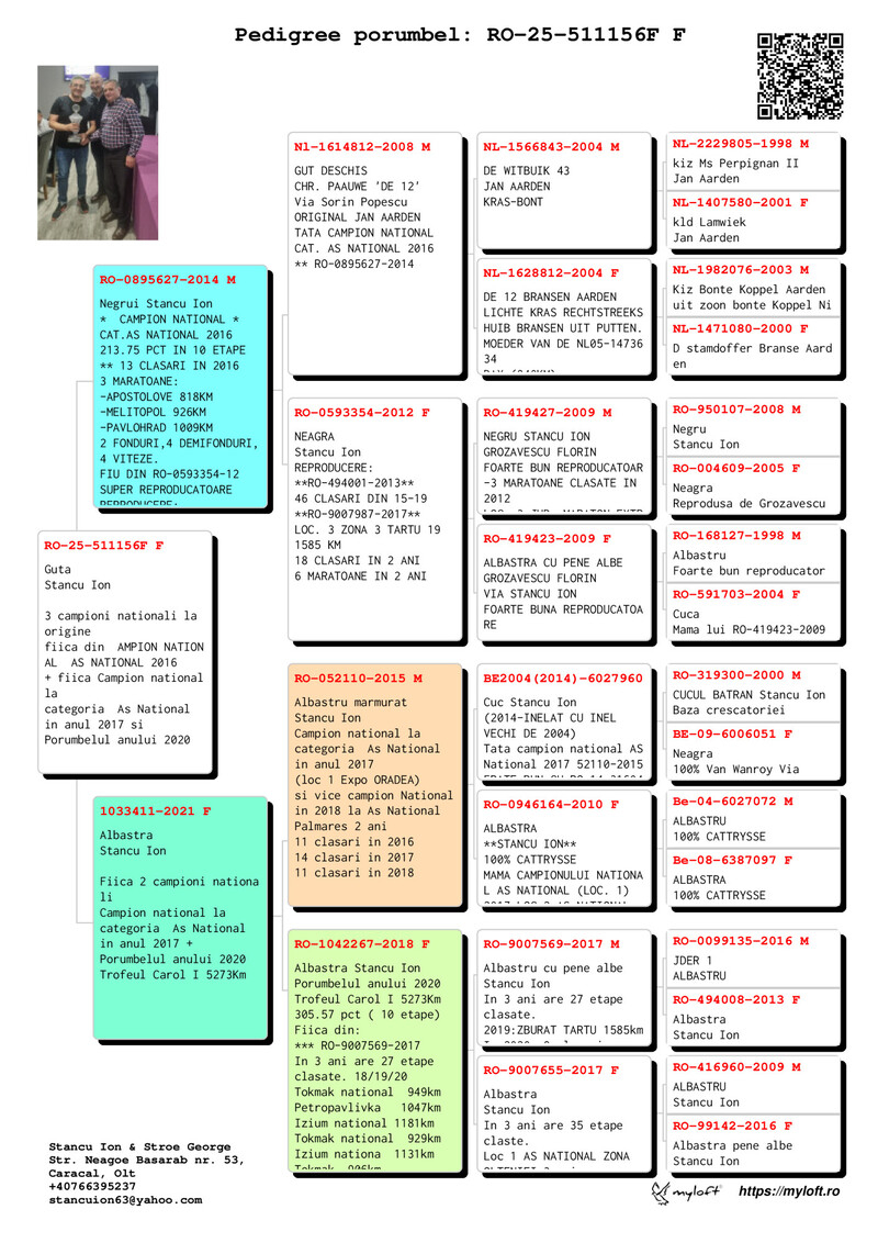 Aus der malerischen Region des Kreises Olt stammend, ist Ion Stancu ein bedeutender Name in der rumänischen Brieftaubenzucht. Mit einer glänzenden Karriere von über vier Jahrzehnten hat er sich als einer der angesehensten und meistgeschätzten Züchter des Landes etabliert und zahlreiche nationale sowie olympische Titel errungen.
