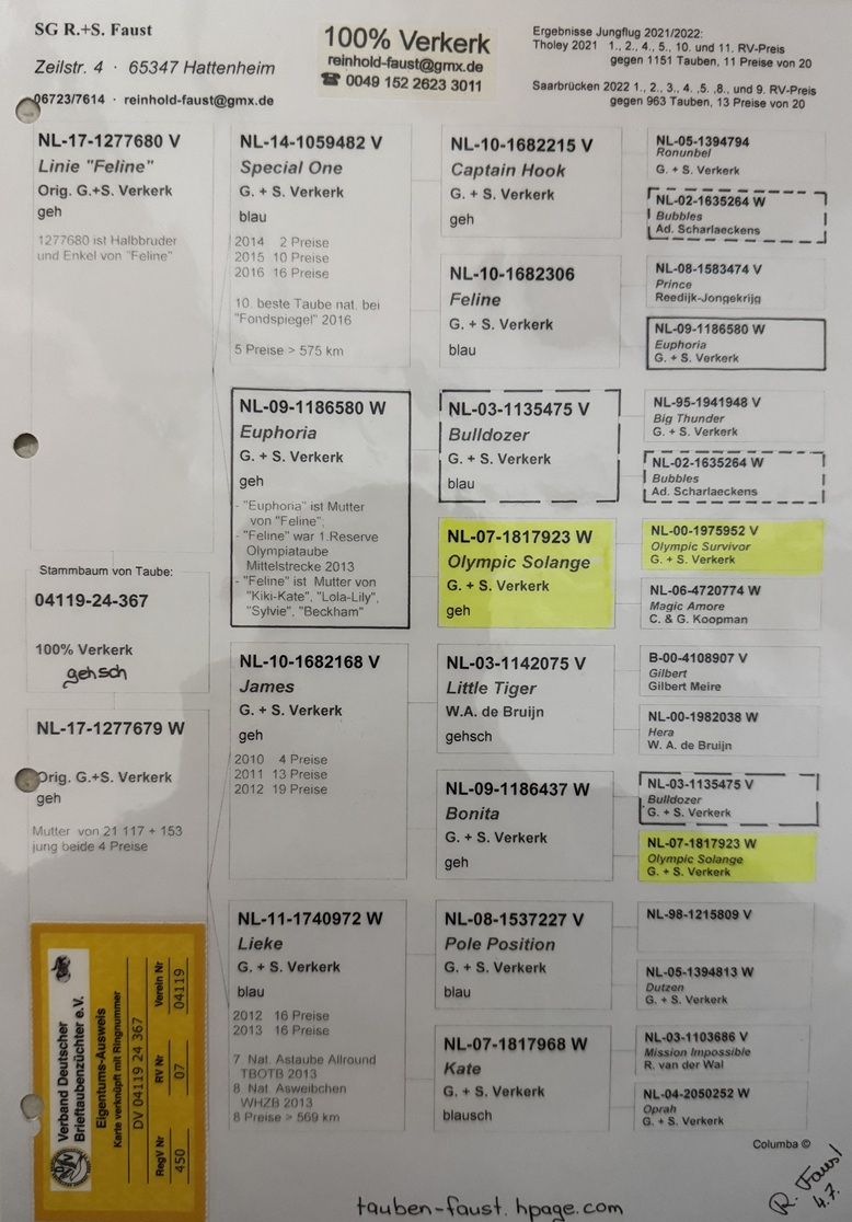 Die Tauben werden erst nach vollständiger Zahlung auf das unten angegebene Bankkonto geliefert: