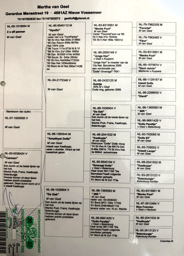 Die Tauben werden erst nach vollständiger Zahlung auf das unten angegebene Bankkonto geliefert: