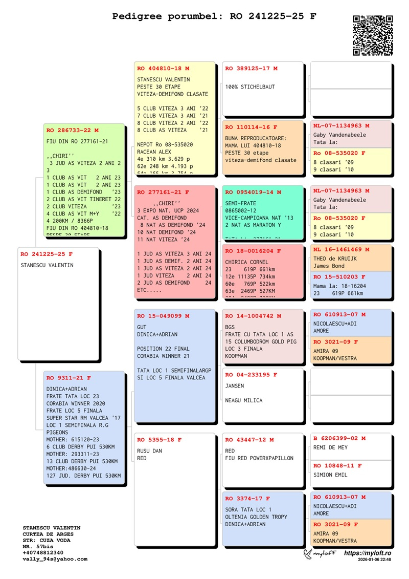 Valentin Stănescu ist ein angesehener Brieftaubenzüchter aus dem Kreis Argeș und aktives Mitglied der Union der Professionellen Brieftaubenzüchter Rumäniens (UCPR). Durch Engagement, Erfahrung und eine moderne Herangehensweise an Zucht und Training hat er sich sowohl auf Kreis- als auch auf nationaler Ebene durch eine beeindruckende Serie von Erfolgen ausgezeichnet.
