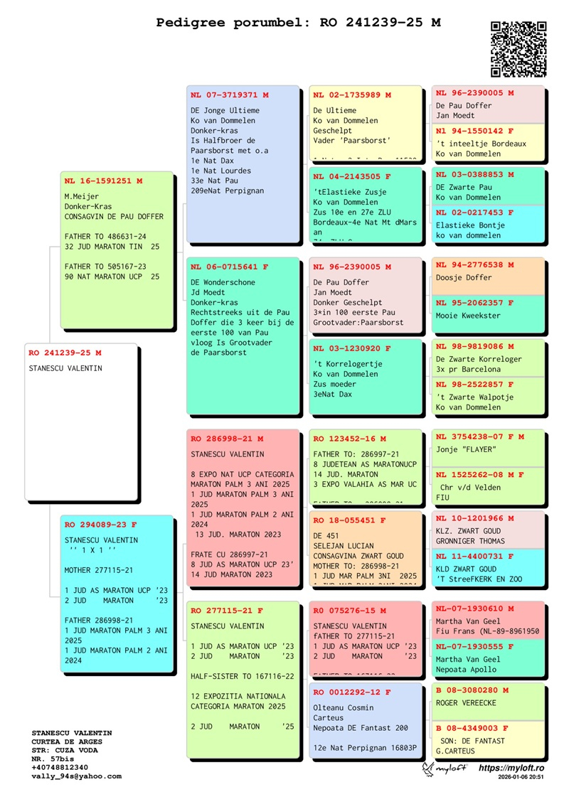 Bekannt für seine Vielseitigkeit und Beständigkeit, zeigt Valentin Stănescu außergewöhnliches Können in allen Bereichen des Leistungsbrieftaubensports – von Kurzstreckenrennen bis hin zu Marathonflügen.