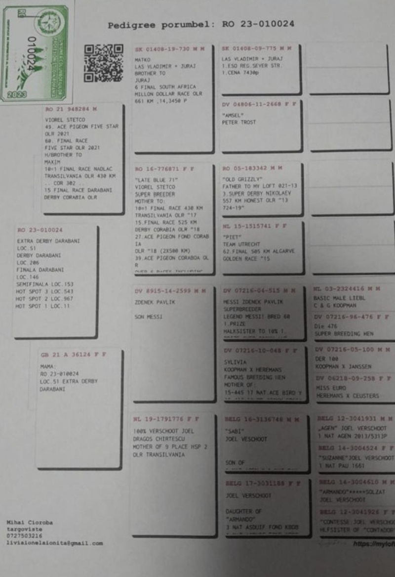 • Externer Transport: 125 RON (25 EUR) pro Taube für Lieferungen aus Europa nach Rumänien.