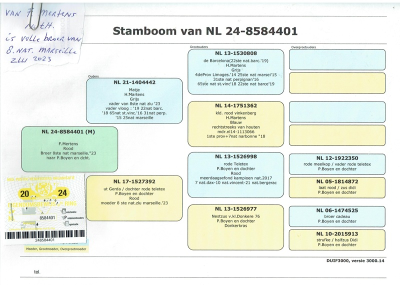Über die Zahlen hinaus besitzt ihre Geschichte auch eine tief menschliche Dimension: Beim letzten Rennen, Bergerac, in einer äußerst schweren Phase für die Familie, wartete „Rode Teletekst“ ruhig auf dem Anflugbrett, obwohl der Züchter bei der Ankunft nicht anwesend war — ein Zeichen nicht nur ihrer sportlichen Klasse, sondern auch ihres Charakters, ihrer Ausgeglichenheit und außergewöhnlichen Treue.