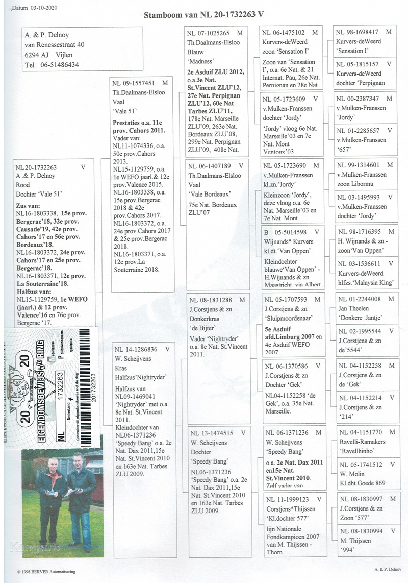 Über die Zahlen hinaus besitzt ihre Geschichte auch eine tief menschliche Dimension: Beim letzten Rennen, Bergerac, in einer äußerst schweren Phase für die Familie, wartete „Rode Teletekst“ ruhig auf dem Anflugbrett, obwohl der Züchter bei der Ankunft nicht anwesend war — ein Zeichen nicht nur ihrer sportlichen Klasse, sondern auch ihres Charakters, ihrer Ausgeglichenheit und außergewöhnlichen Treue.