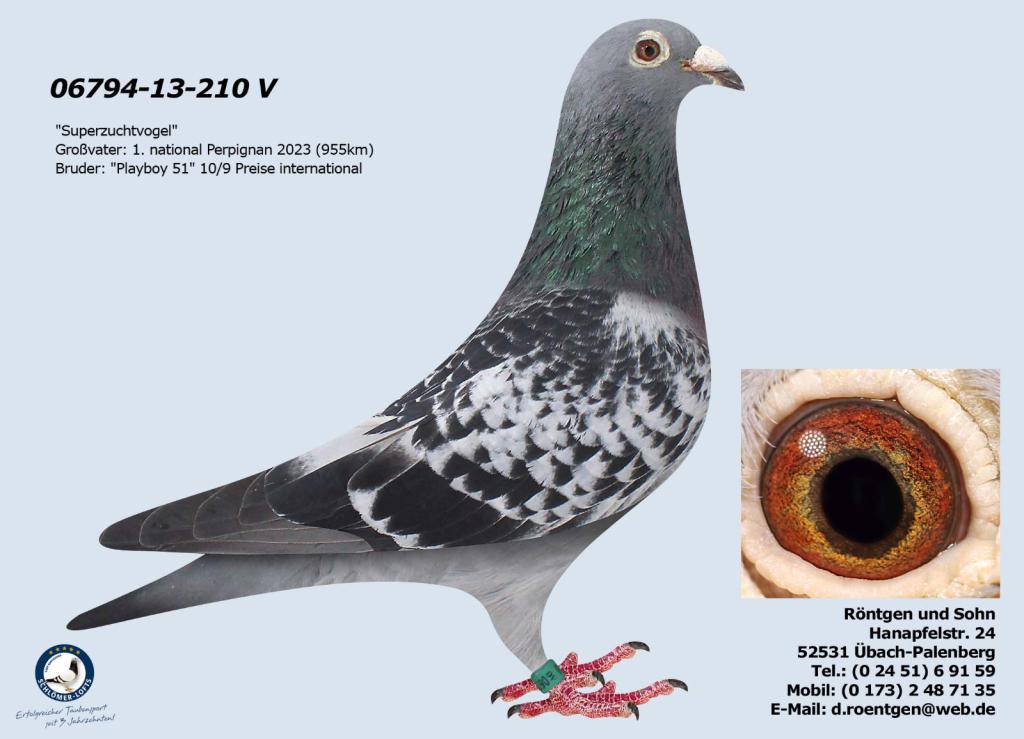 The success of the Röntgen family is not built around a single pigeon, but on an extremely stable team capable of performing year after year. Among their reference pigeons are: