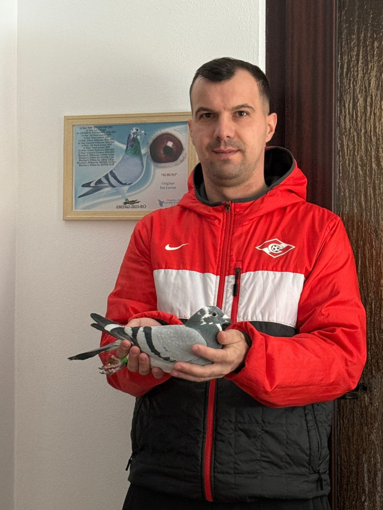 Ion Lucian competes in the General categories with approximately 80 widowhood cocks. His system is well structured: the pigeons raise one youngster before the season, and one week before the first race they are placed on widowhood. Between races, one or two training sessions of approximately 70 km are carried out, sufficient to maintain orientation and condition. The champion originates from original Pîslă Daniel pigeons.