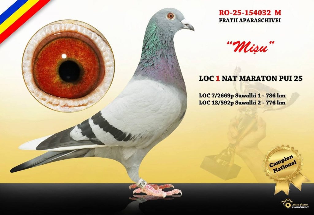 A benchmark result was achieved by the brothers Lucian Aparaschivei and Ionel Aparaschivei, who competed in the marathon with 35 young birds. The standout bird of the season was RO-2025-0154032, which showed its potential from its very first race, when it arrived first on the loft. Although its arrival took place on the second day at 12:46:39, it still placed 7th on the release, entering the calculation for a very strong norm score. The calculation proved excellent in the second race as well, when the same pigeon again arrived first at the loft, placing 21st on release and 13th in the zone at a distance of 786 km. It thus completed the norm with 24.58 penalty points, earning the title of National Champion.