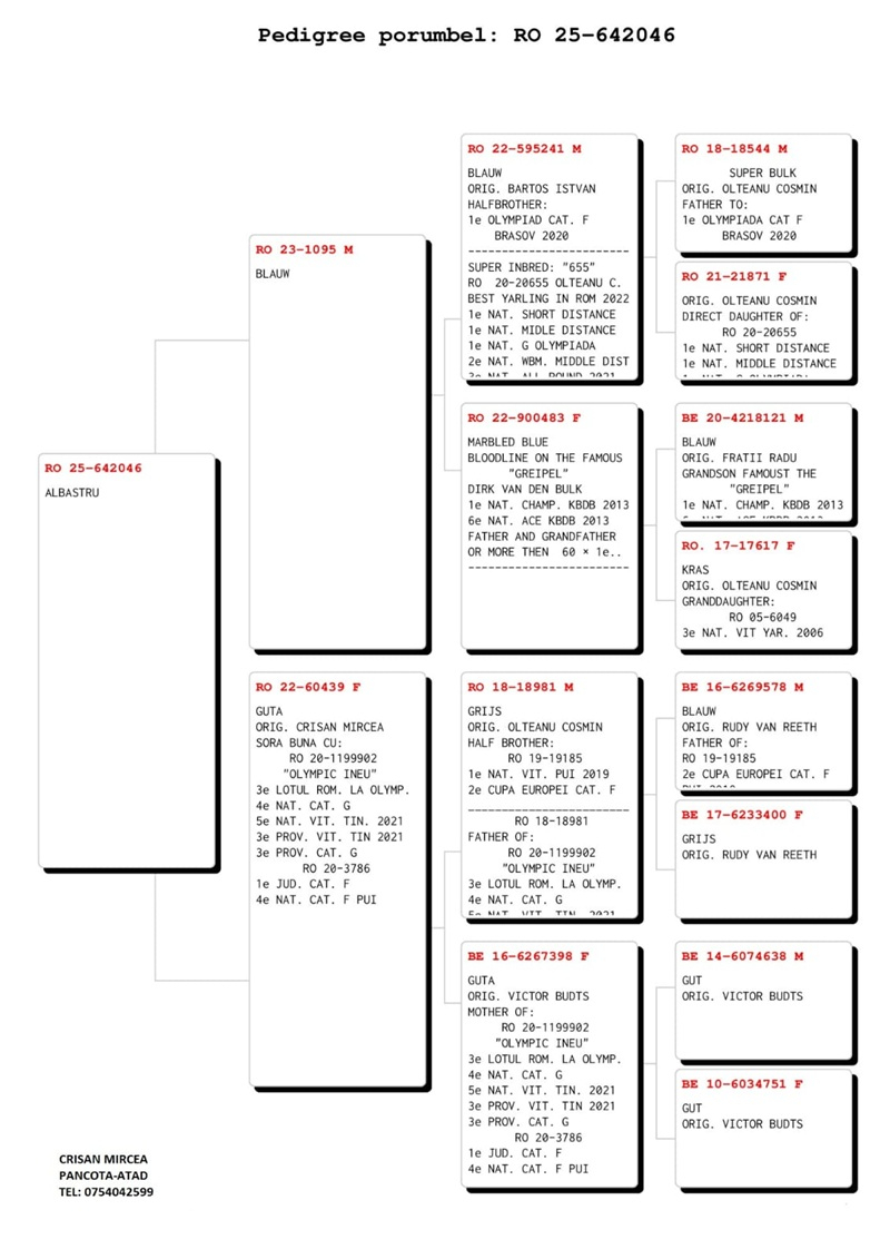 • External transport: 125 RON (25 EUR) per pigeon for deliveries from Europe to Romania.