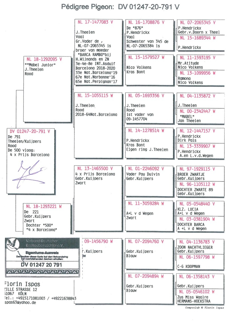 At present, due to health issues, I am compelled to give up the pigeons from my breeding line. Nevertheless, I have decided to keep my team of racers, which I intend to care for and manage as much as my circumstances allow, thus maintaining my connection to this lifelong passion.