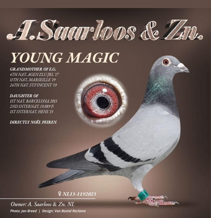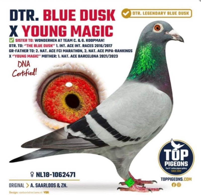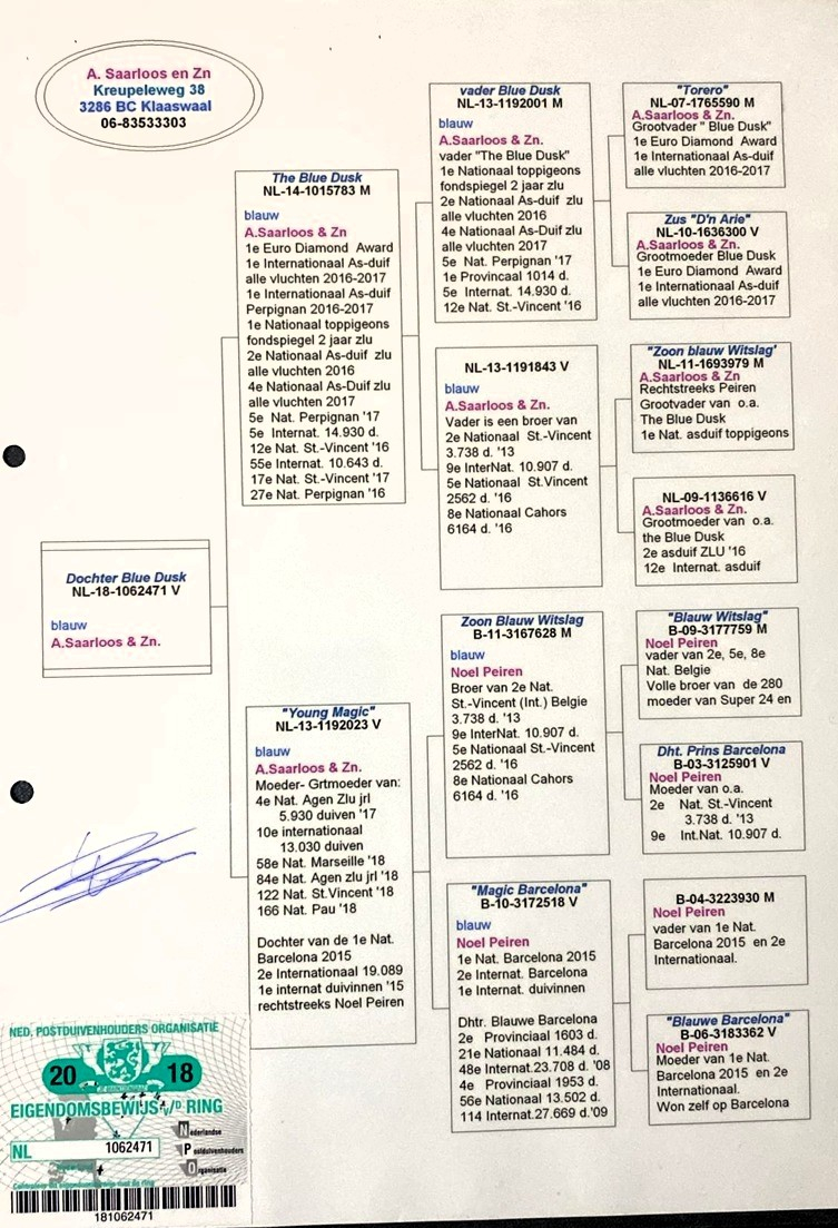 This selection brings together direct and close descendants of top-class pigeons from renowned European lofts, recognized for their consistent results and major genetic influence: