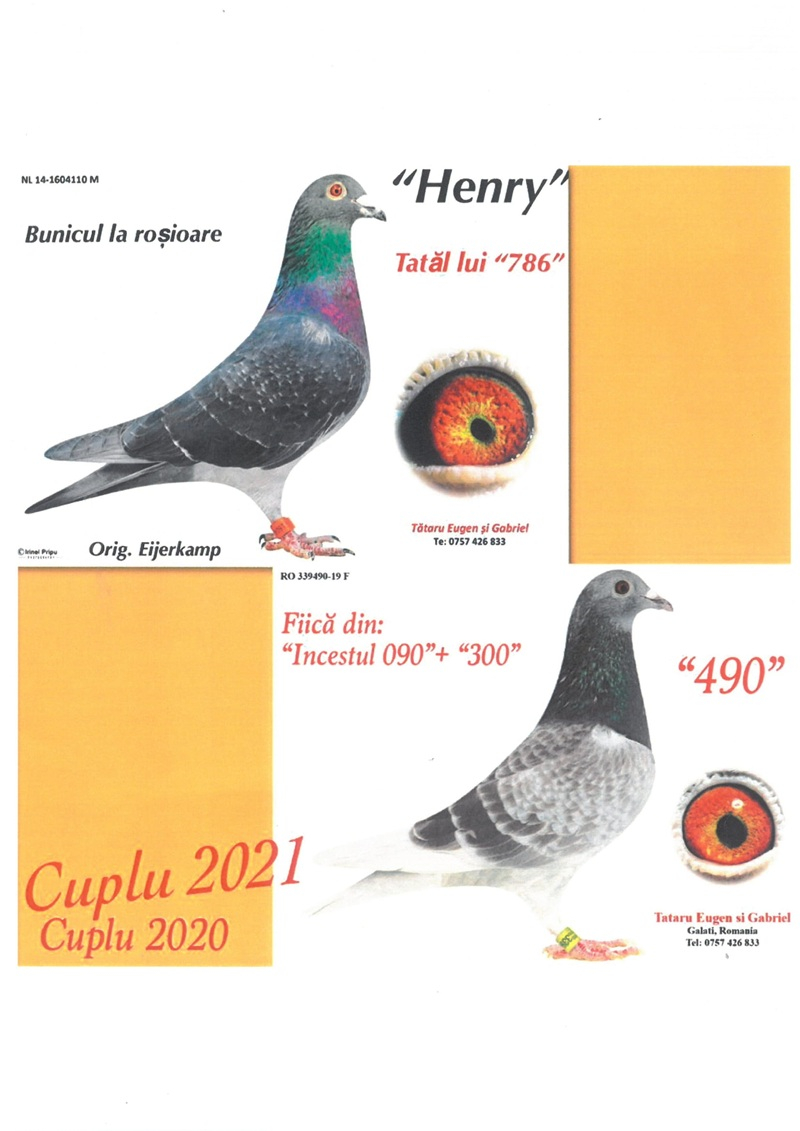 • Home delivery: 250 RON (50 EUR) per pigeon.