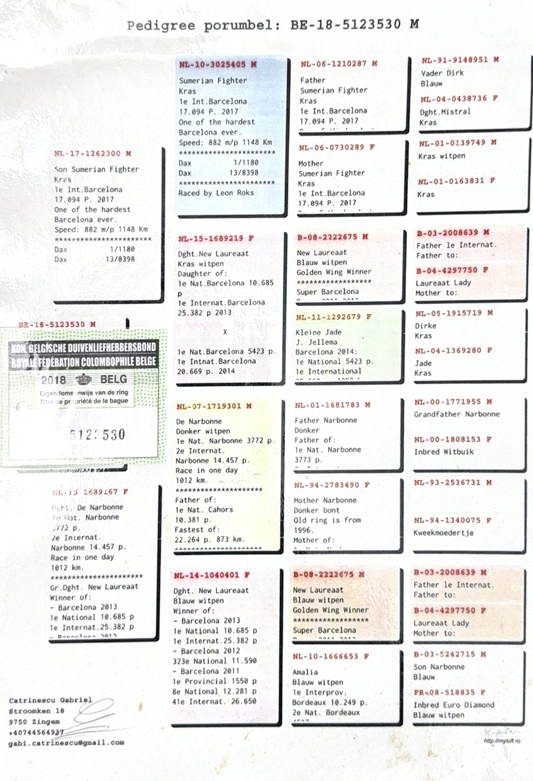 • Domestic transport within Romania: 75 RON (15 EUR) per pigeon.