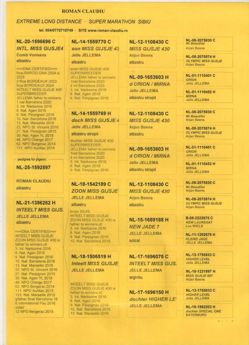 This auction represents a rare opportunity to acquire top-tier, tested, and certified genetic material, coming directly from the loft of a distinguished Romanian fancier, recognized for his professionalism and international reputation.