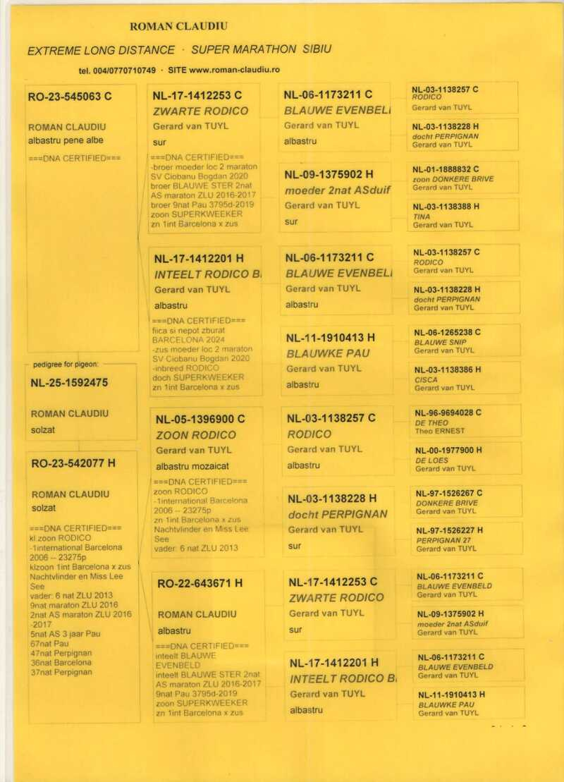 This auction represents a rare opportunity to acquire top-tier, tested, and certified genetic material, coming directly from the loft of a distinguished Romanian fancier, recognized for his professionalism and international reputation.