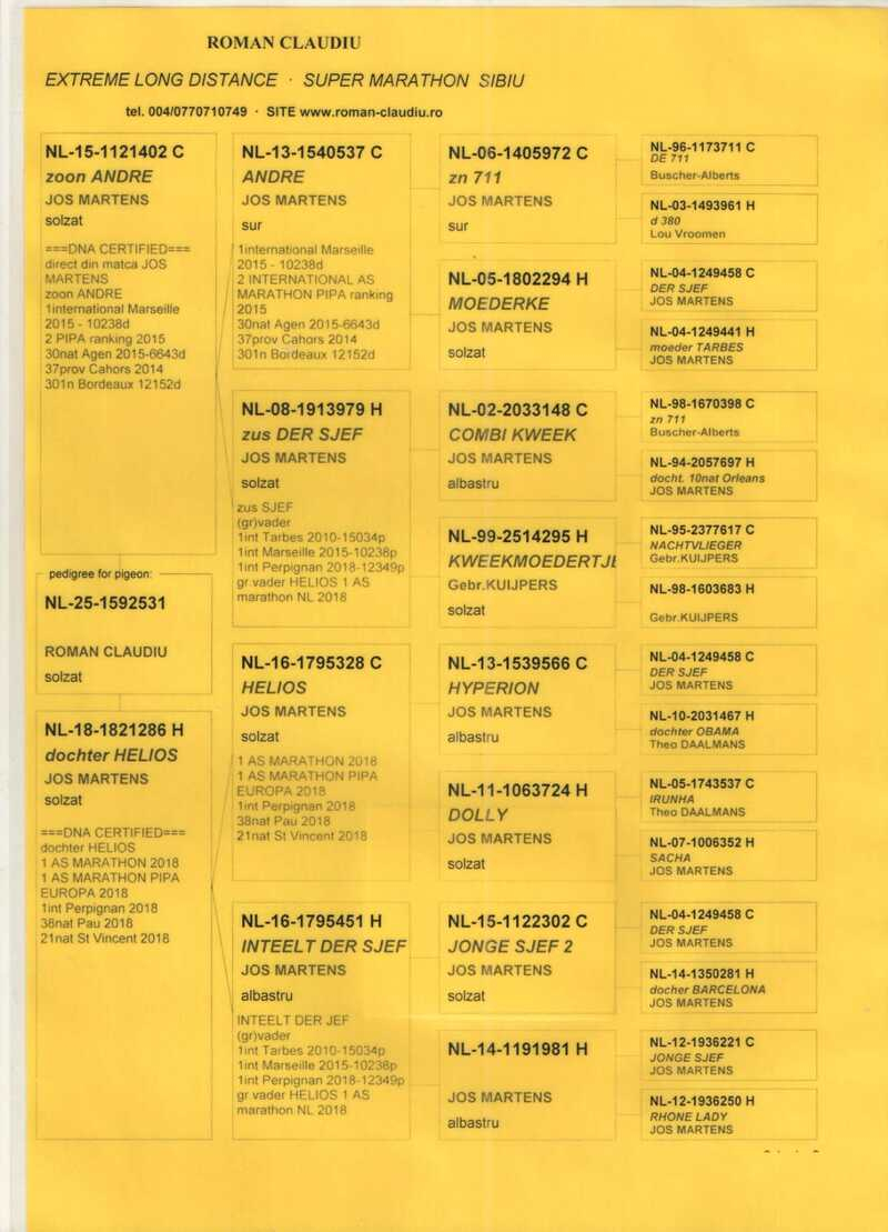 This auction represents a rare opportunity to acquire top-tier, tested, and certified genetic material, coming directly from the loft of a distinguished Romanian fancier, recognized for his professionalism and international reputation.