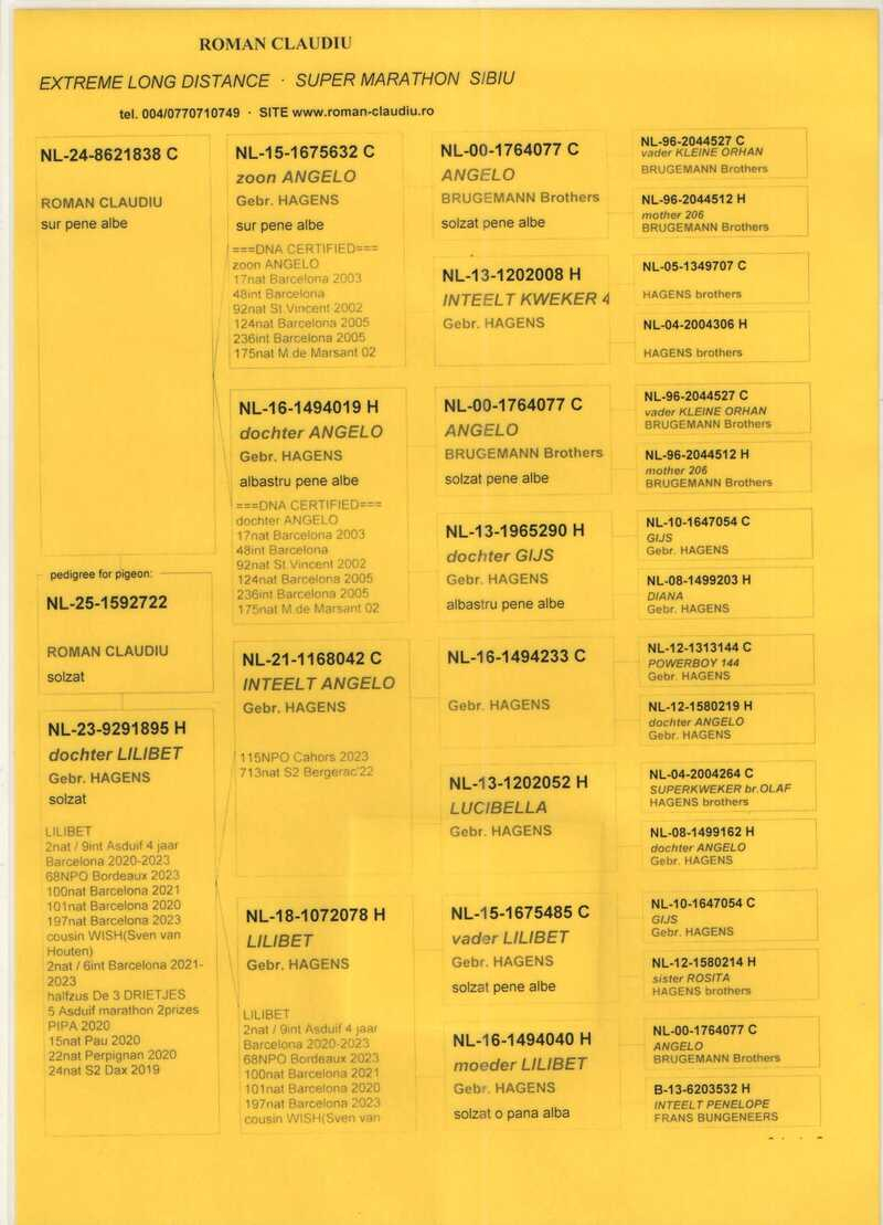 This auction represents a rare opportunity to acquire top-tier, tested, and certified genetic material, coming directly from the loft of a distinguished Romanian fancier, recognized for his professionalism and international reputation.