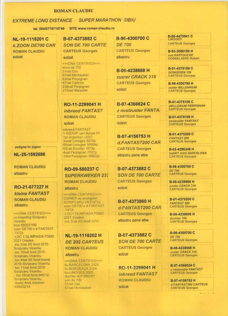 This auction represents a rare opportunity to acquire top-tier, tested, and certified genetic material, coming directly from the loft of a distinguished Romanian fancier, recognized for his professionalism and international reputation.