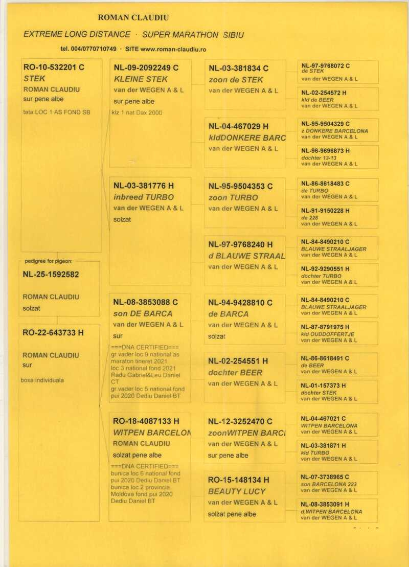This auction represents a rare opportunity to acquire top-tier, tested, and certified genetic material, coming directly from the loft of a distinguished Romanian fancier, recognized for his professionalism and international reputation.