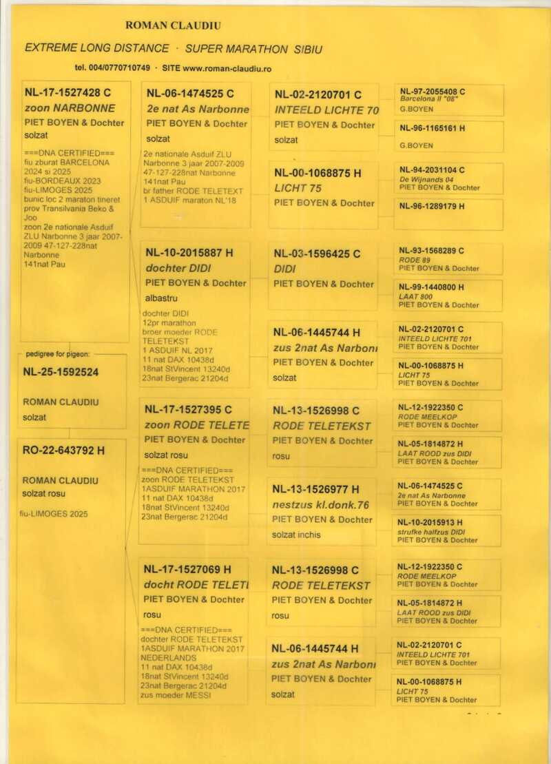 This auction represents a rare opportunity to acquire top-tier, tested, and certified genetic material, coming directly from the loft of a distinguished Romanian fancier, recognized for his professionalism and international reputation.