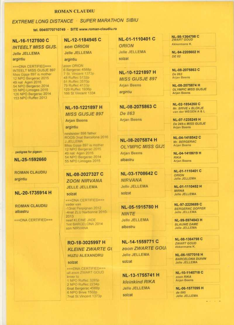 This auction represents a rare opportunity to acquire top-tier, tested, and certified genetic material, coming directly from the loft of a distinguished Romanian fancier, recognized for his professionalism and international reputation.