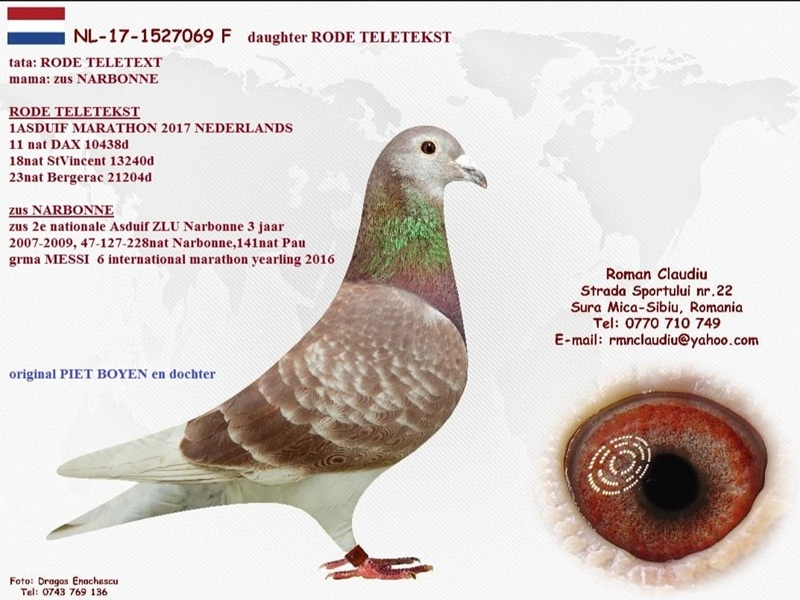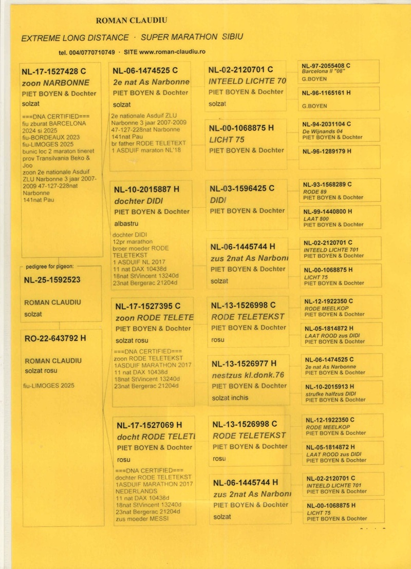 This auction represents a rare opportunity to acquire top-tier, tested, and certified genetic material, coming directly from the loft of a distinguished Romanian fancier, recognized for his professionalism and international reputation.