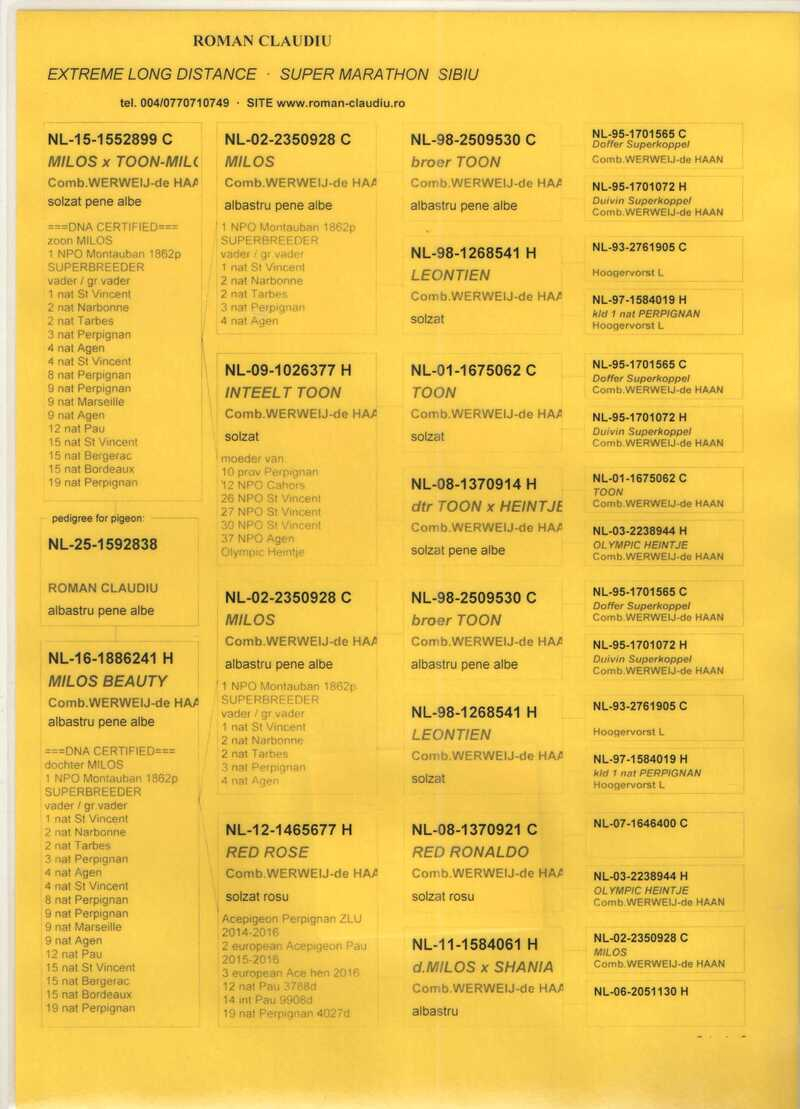 This auction represents a rare opportunity to acquire top-tier, tested, and certified genetic material, coming directly from the loft of a distinguished Romanian fancier, recognized for his professionalism and international reputation.