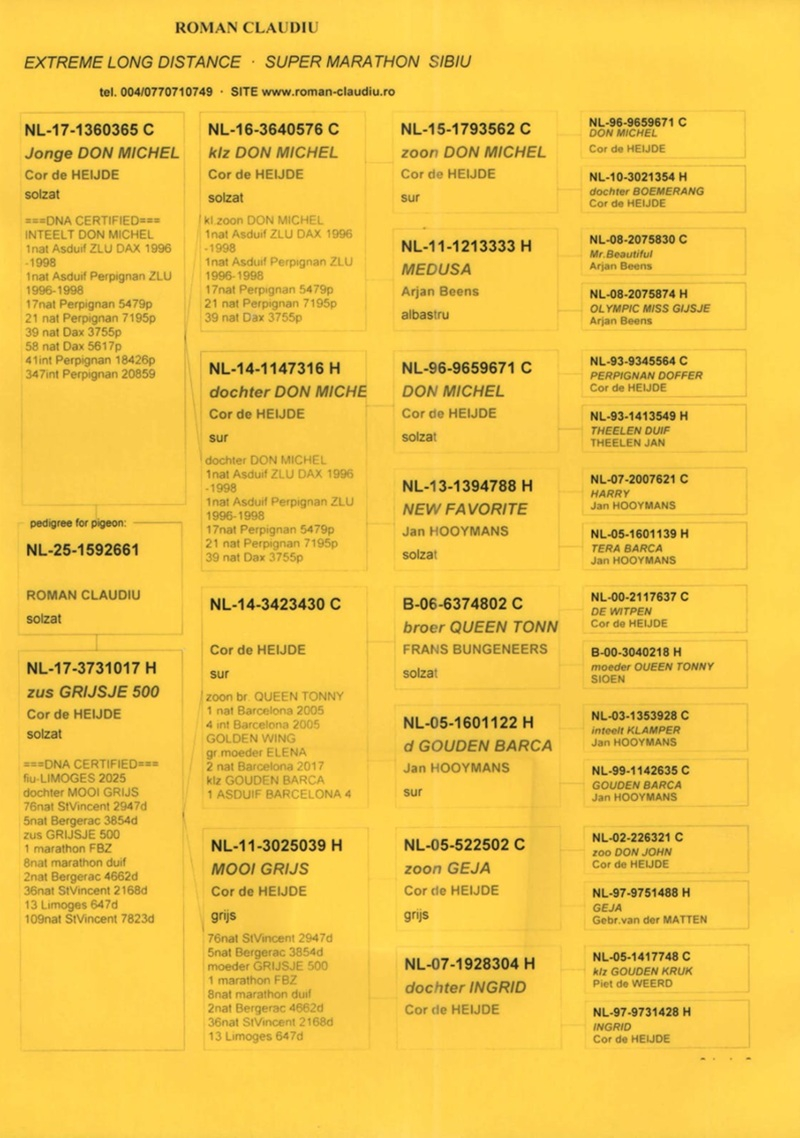 This auction represents a rare opportunity to acquire top-tier, tested, and certified genetic material, coming directly from the loft of a distinguished Romanian fancier, recognized for his professionalism and international reputation.