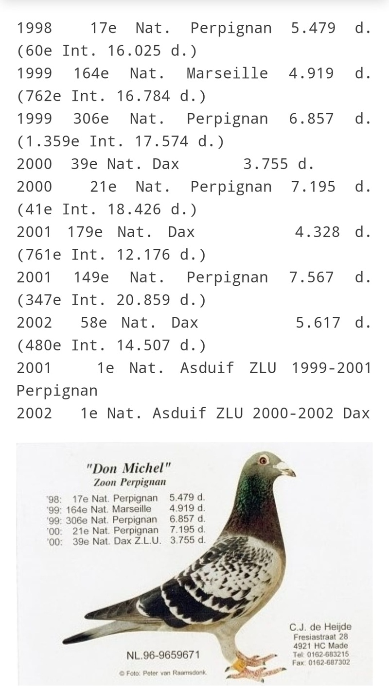 These pigeons descend from prestigious bloodlines – Van der Wegen, De Heijde, Hagens, and Belleter – families composed of birds with proven performances, carefully selected, flight-tested, and prepared for the elite marathon races of the coming seasons (Bordeaux 2025, Barcelona 2026).