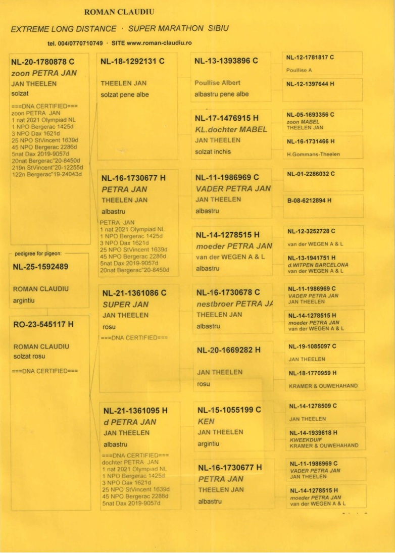 This auction represents a rare opportunity to acquire top-tier, tested, and certified genetic material, coming directly from the loft of a distinguished Romanian fancier, recognized for his professionalism and international reputation.