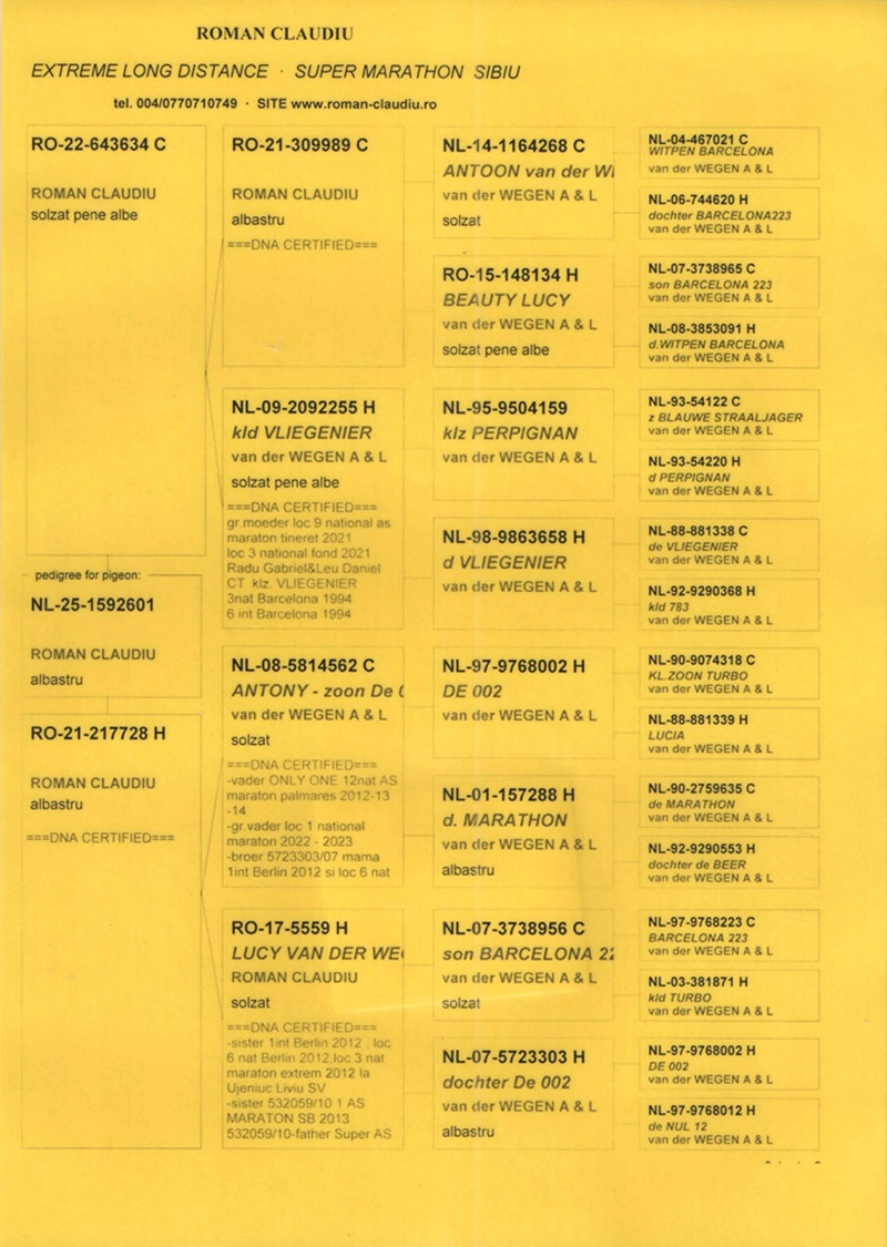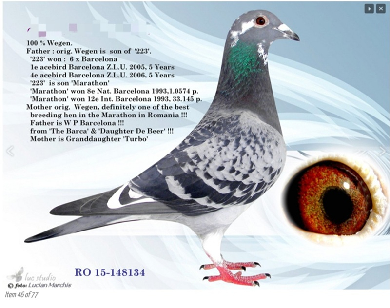 This auction represents a rare opportunity to acquire top-tier, tested, and certified genetic material, coming directly from the loft of a distinguished Romanian fancier, recognized for his professionalism and international reputation.