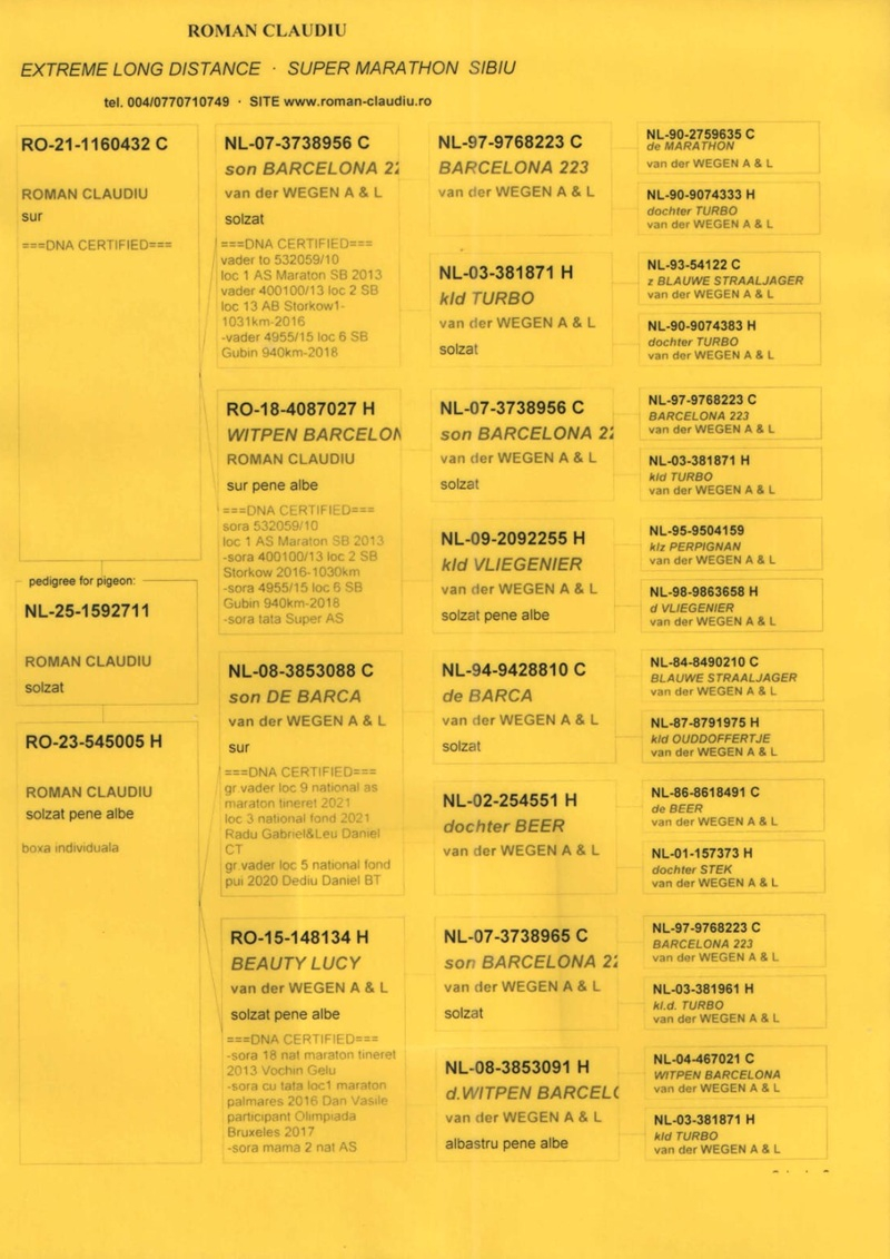 This auction represents a rare opportunity to acquire top-tier, tested, and certified genetic material, coming directly from the loft of a distinguished Romanian fancier, recognized for his professionalism and international reputation.