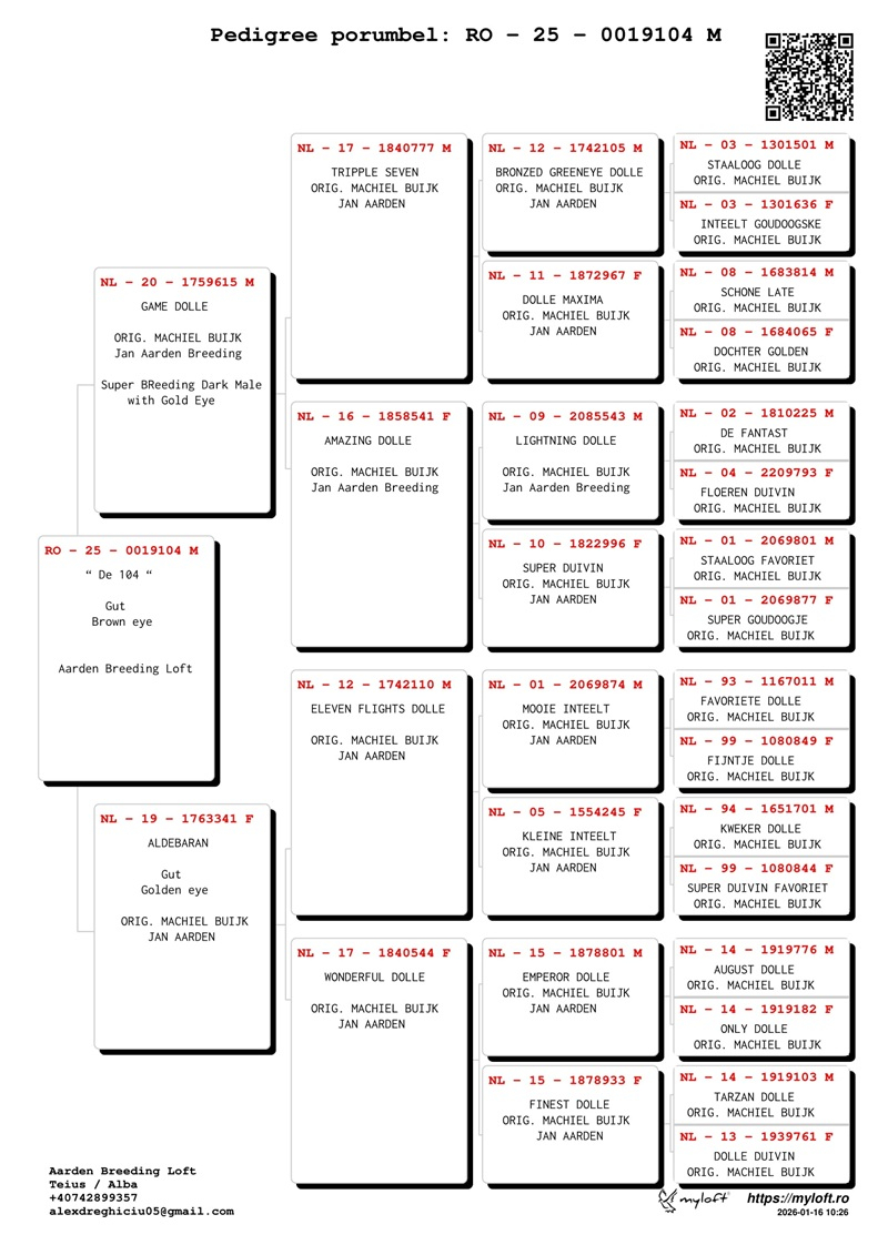 Aarden Breeding Loft – Jan Aarden Genetic Excellence, Tradition and Passion for an Immortal Breed