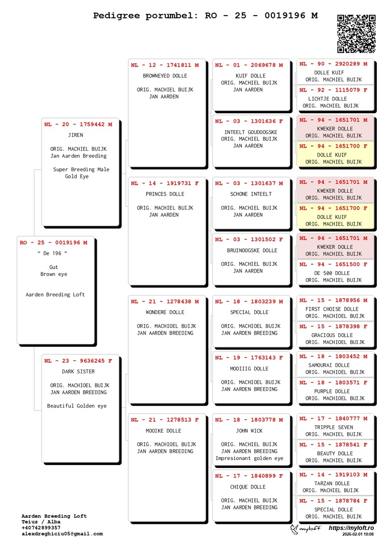 Aarden Breeding Loft is a breeding center dedicated exclusively to Jan Aarden pigeons, following the Machiel Buijk bloodline, with the primary mission of preserving, improving, and developing this elite genetic strain in pure blood.