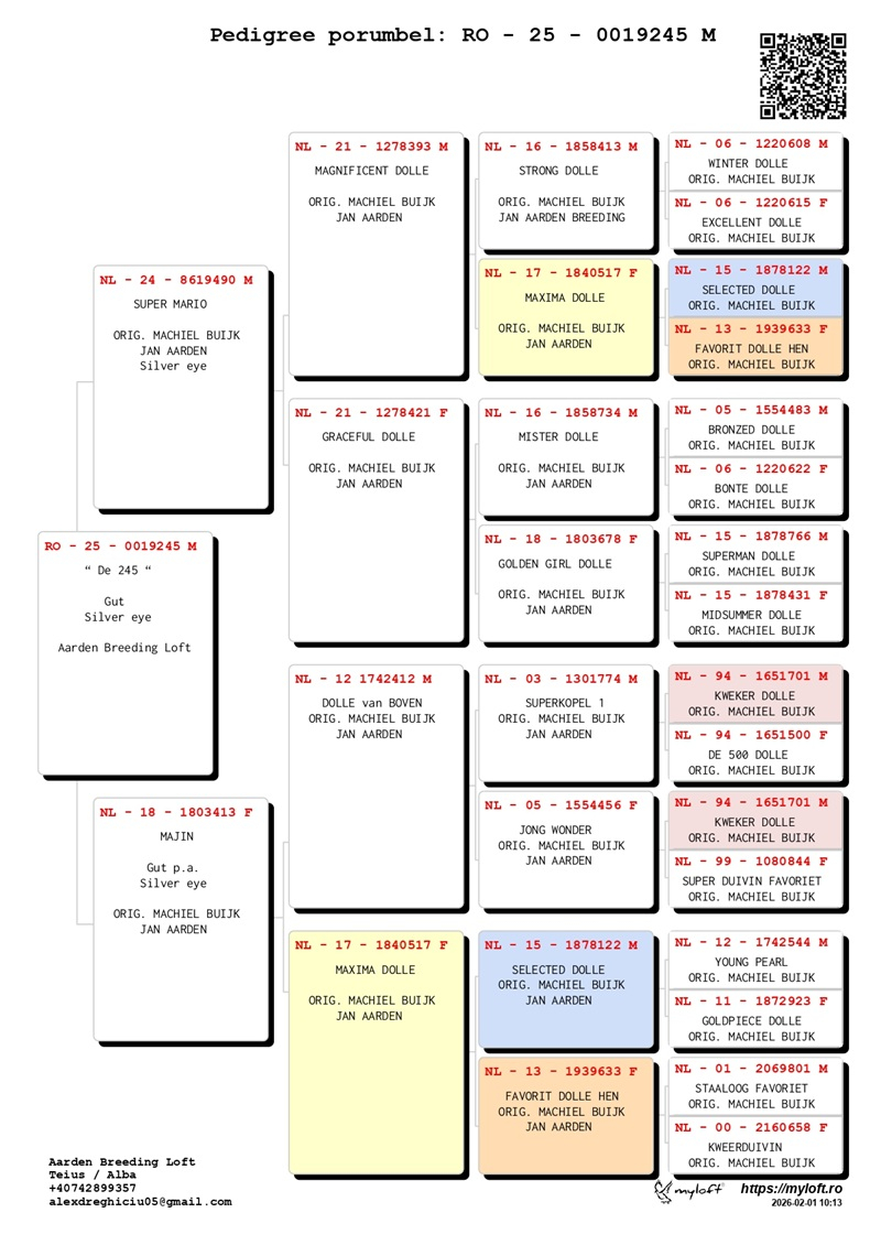 Aarden Breeding Loft is a breeding center dedicated exclusively to Jan Aarden pigeons, following the Machiel Buijk bloodline, with the primary mission of preserving, improving, and developing this elite genetic strain in pure blood.