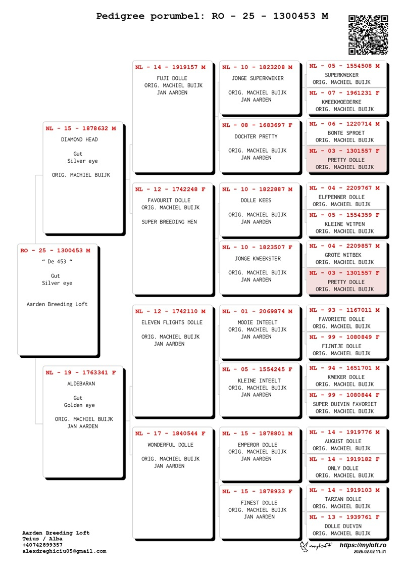 Aarden Breeding Loft is a breeding center dedicated exclusively to Jan Aarden pigeons, following the Machiel Buijk bloodline, with the primary mission of preserving, improving, and developing this elite genetic strain in pure blood.