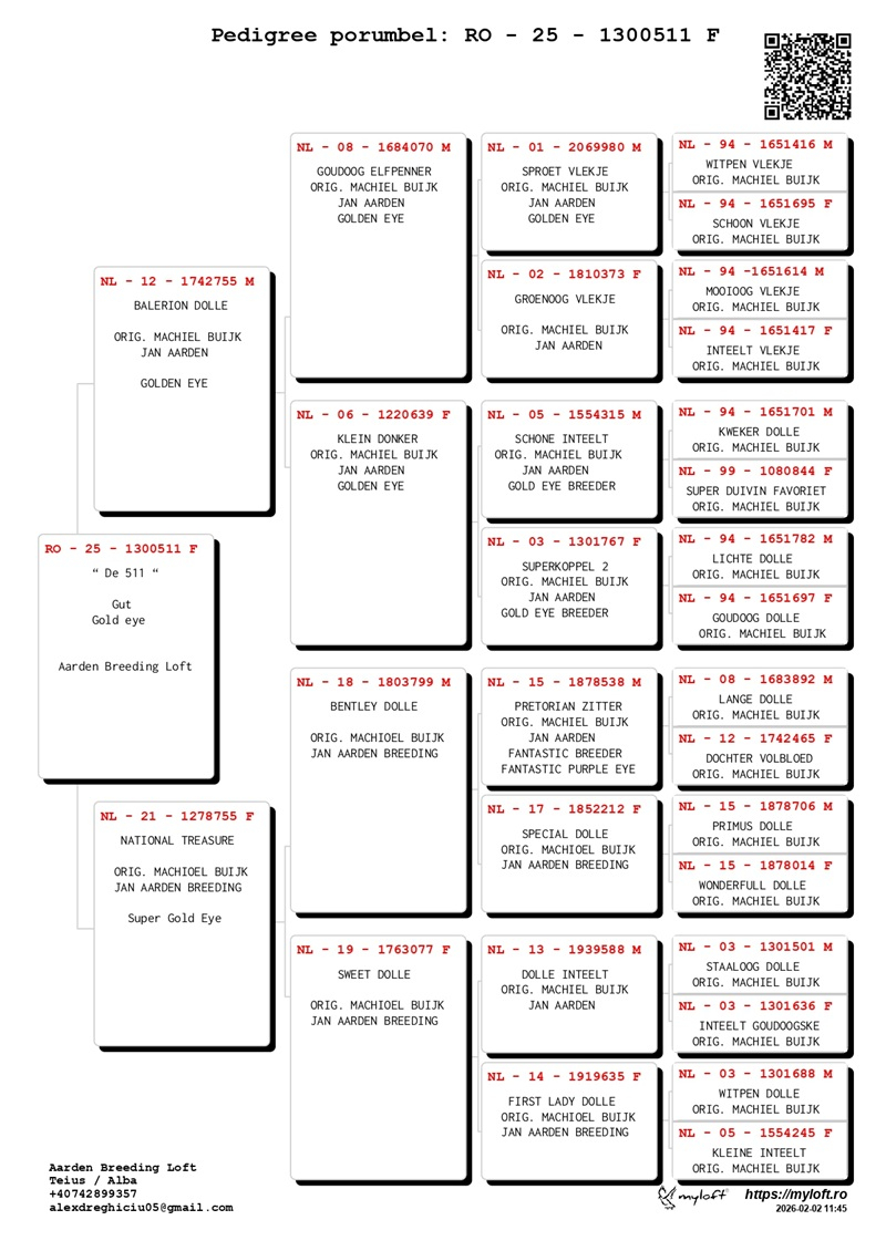 Aarden Breeding Loft is a breeding center dedicated exclusively to Jan Aarden pigeons, following the Machiel Buijk bloodline, with the primary mission of preserving, improving, and developing this elite genetic strain in pure blood.